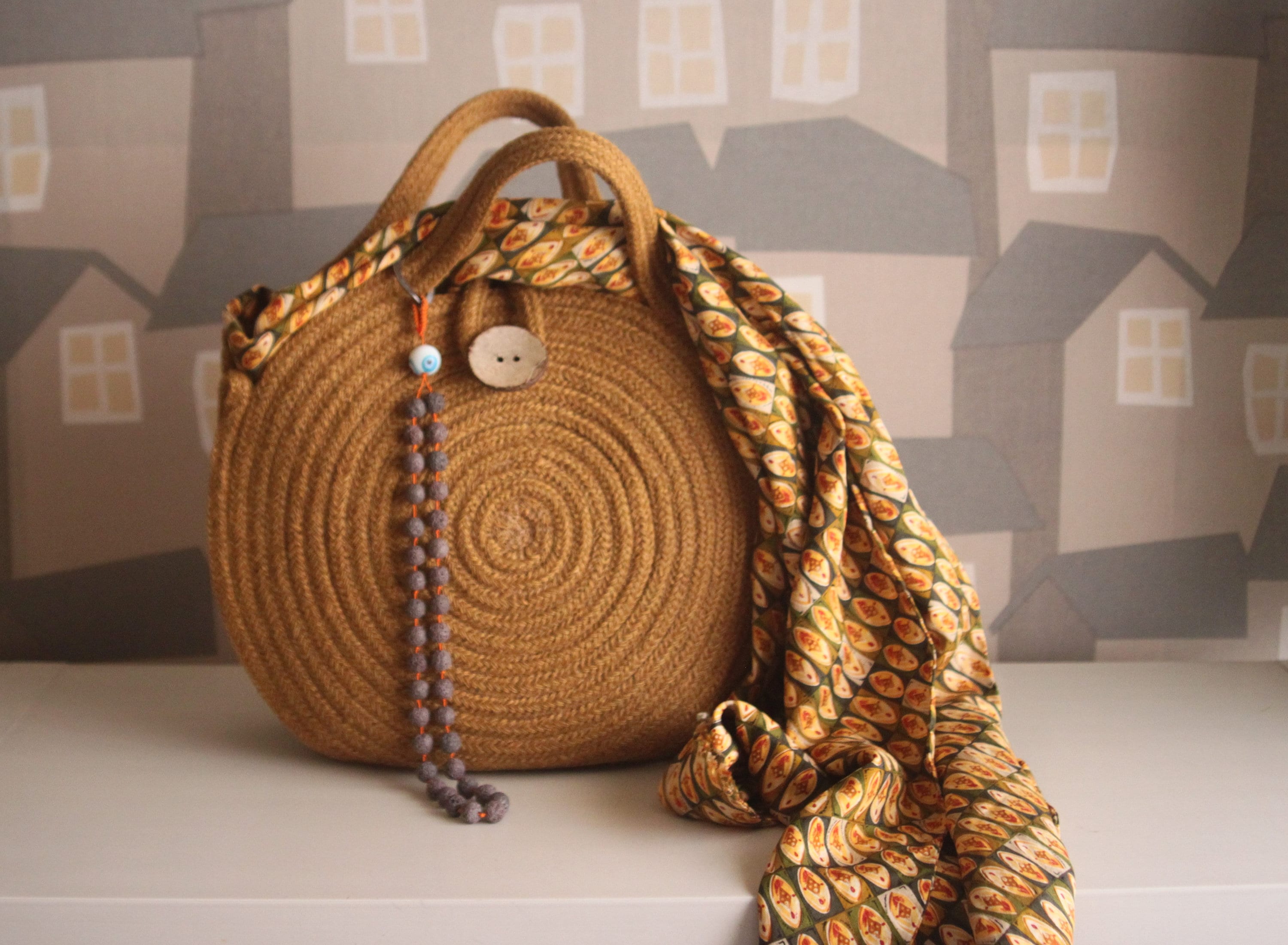 HANDMADE BASKET BAG, JUTE ROPE BASKET BAG